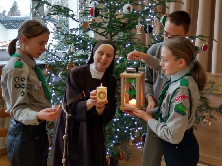 W czwartek 21 grudnia przyszli do nas Harcerze z Drużyny Harcerskiej im. Danuty Siedzikówny „Inki” i przekazali do naszego Ośrodka Betlejemskie Światło Pokoju wraz z pięknym mottem: „Czyńmy Pokój”, które niesie w sobie przesłanie nadziei i jedności.