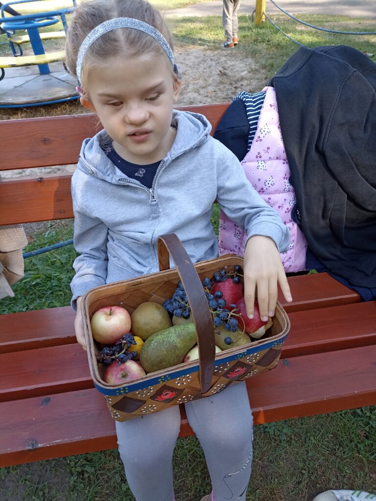 Na zakończenie tygodnia poświęconego poznawaniu owoców wybraliśmy się na jesienny spacer do sadu przy Domu Świętego Maksymiliania. Nazbieraliśmy do koszyków dużo jabłek, gruszek i śliwek. Skosztowaliśmy słodkich winogron dojrzewających w naszym „laskowskim słońcu”. Po udanych zbiorach nadszedł czas na…
