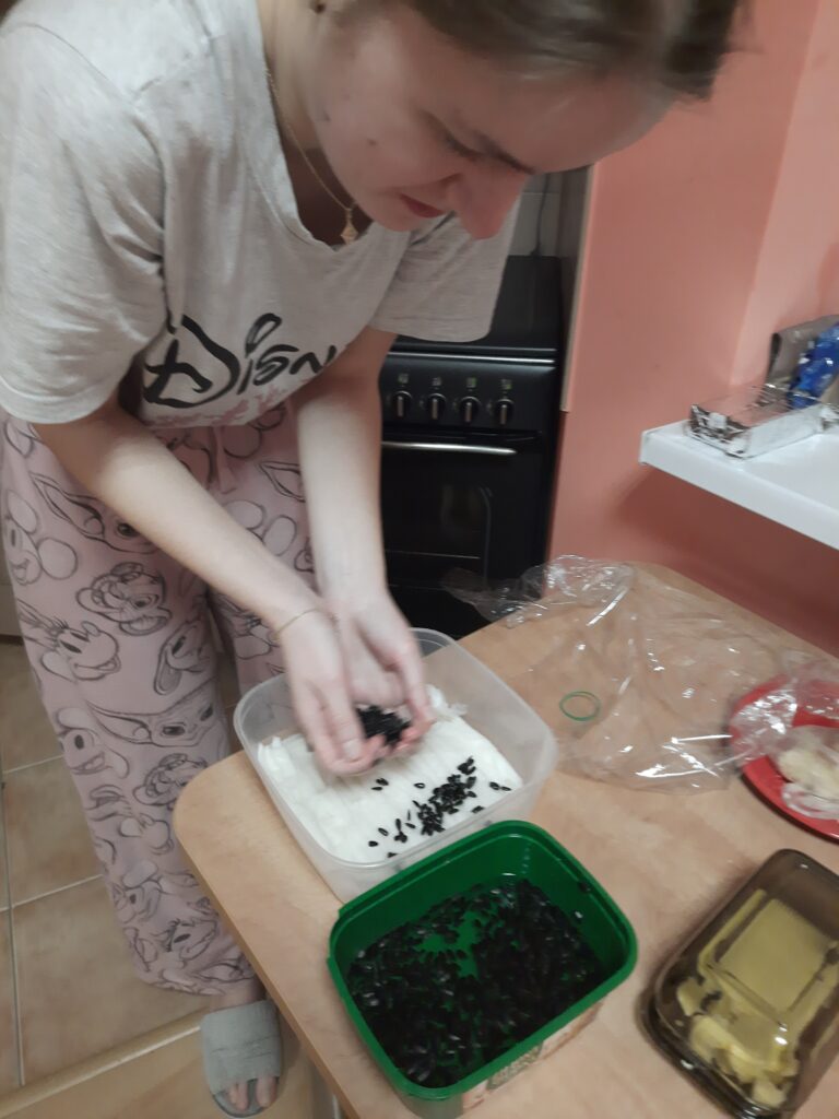 Opakowanie z nasionami słonecznika na kiełkiNamoczone w misce nasiona słonecznika Karolina sieje na ligninie nasiona słonecznikaNasiona słonecznika, które wykiełkowałyPolina sprawdza przyrost kiełkówKiełki słonecznika w misceJulia ozdabia kanapki kiełkamiWiosenne kanapki z kiełkamiOpakowania z nasionami kwiatówDziewczęta z grupy VI przygotowują pojemniki z ziemią do posiania nasionJulia przygotowuje pojemnik z ziemią do zasiania nasionJulia podlewa nasionaKiełkujące nasiona kwiatówRosnące sadzonki nasturcji oraz komarzycyNasturcja w pojemnikuPrzygotowana drewniana skrzynia z ziemią
