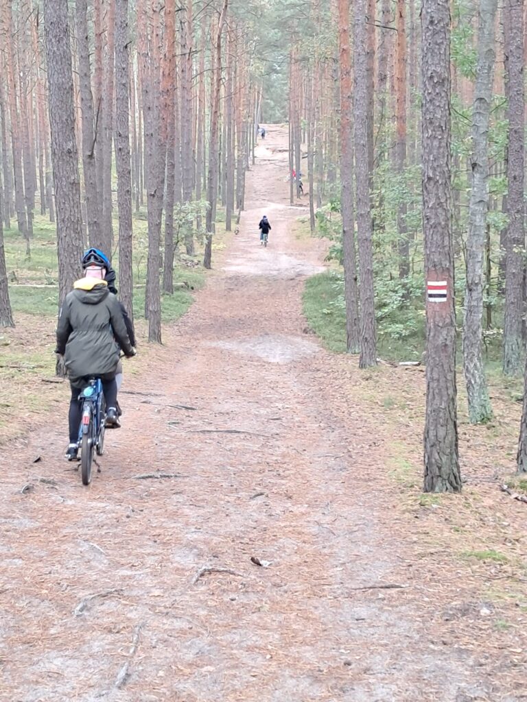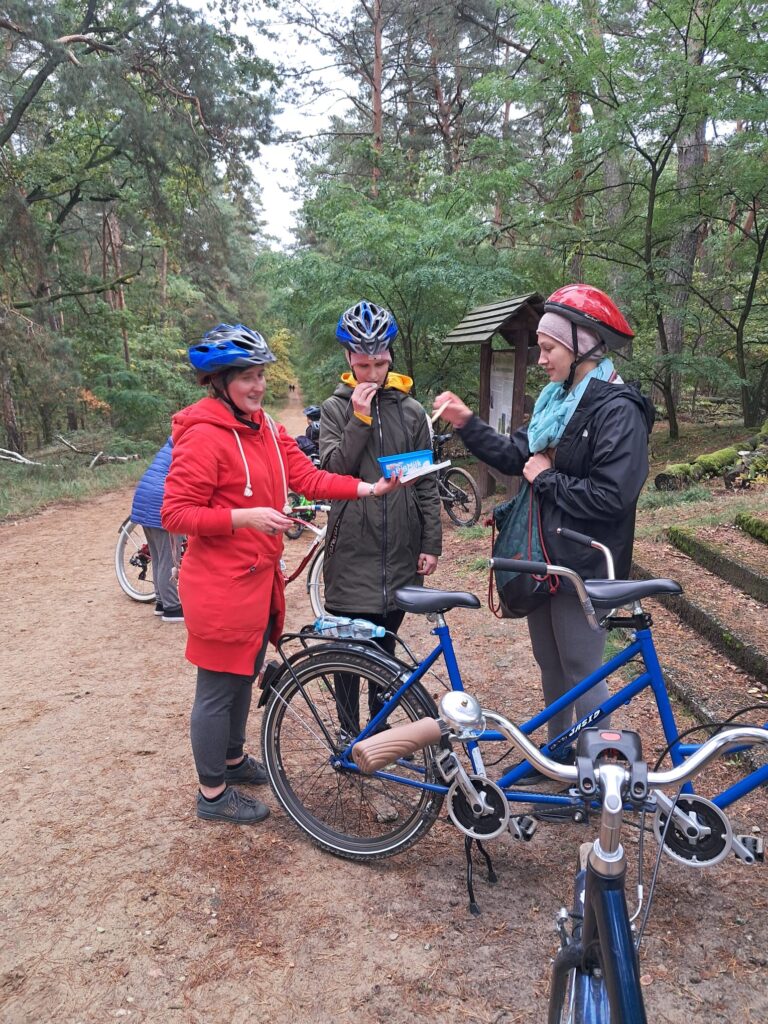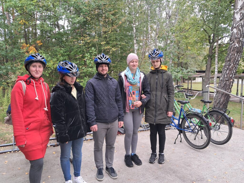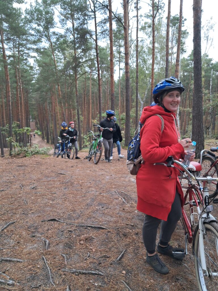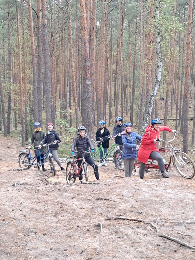 5.X.2024roku po obiedzie wyruszyliśmy trzema tandemami i dwoma pojedynczymi rowerami na rajd rowerowy szlakami Puszczy Kampinoskiej. Przewodnikami byli: panie Jola, Albertyna, wolontariusze – p. Weronika i pan Rafał. Chętne, odważne i otwarte na przygodę były dziewczęta z grup V, VI: Oliwia, Julia, Paulina, Valeria.