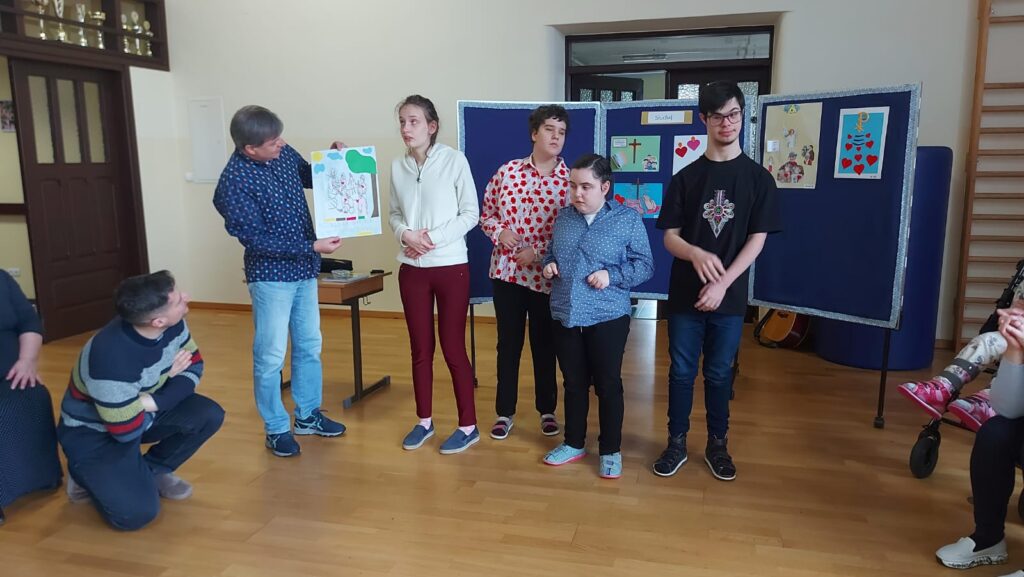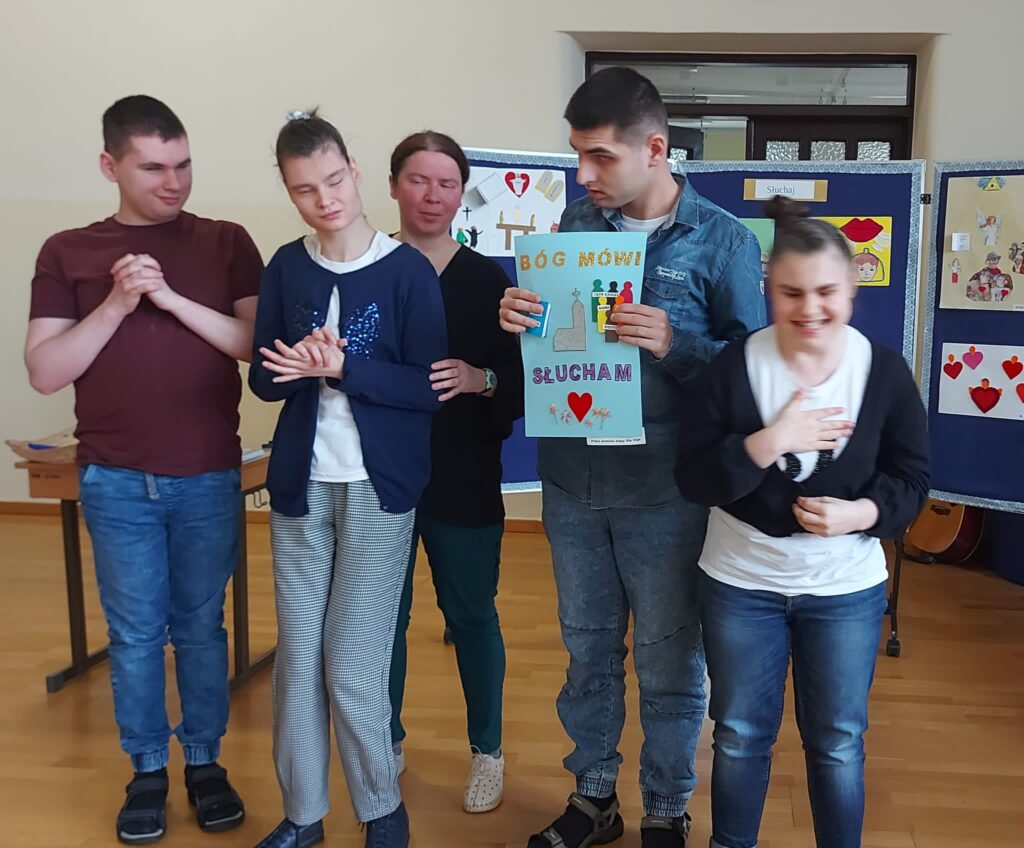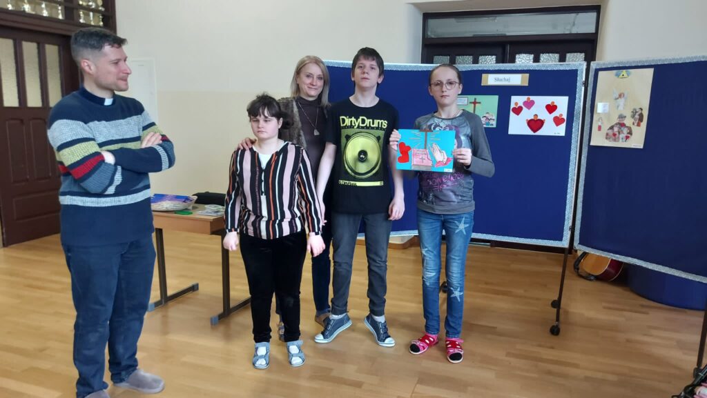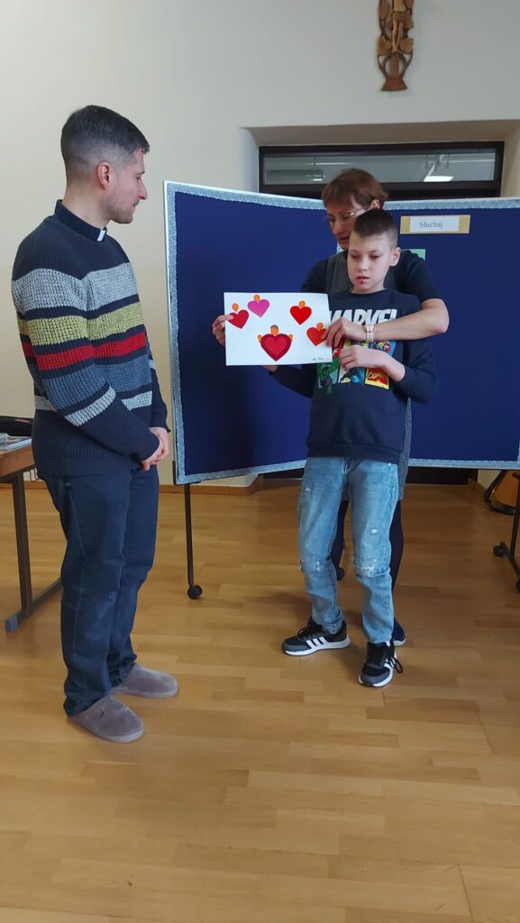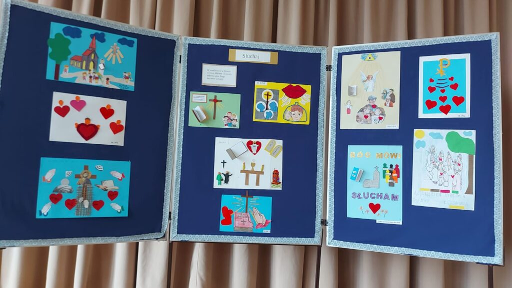Ks. Sebastian mówił o tym w jaki sposób Pan Bóg mówi do nas i co nam przeszkadza w usłyszeniu Pana Boga. Proste wierszyki i piosenki wspaniale utrwalały te prawdy. Prace plastyczne wykonane w klasach z nauczycielami były podsumowaniem rekolekcji. Mamy nadzieję, że ten czas rekolekcji przyniesie obfite owoce w naszym życiu.