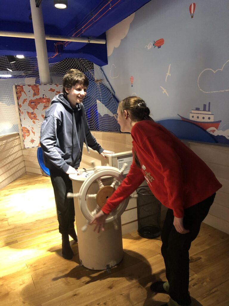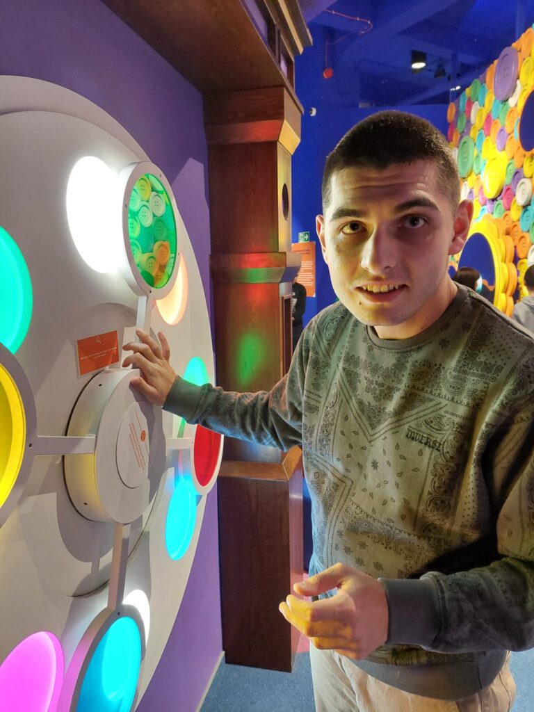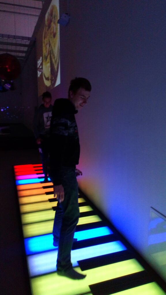 Następnego dnia zaplanowano wyjazd do Sztolni Królowej Luizy w Zabrzu. Zjechaliśmy windą na poziom wydobycia węgla nieczynnej już od kilkudziesięciu lat kopalni. Przewodnik zapoznał nas z historią górnictwa. Mogliśmy dotknąć różnych maszyn i urządzeń do wydobycia węgla, bardzo ciekawe były modele koni pracujących w kopalni: jeden był spuszczany na szerokich taśmach przez szyb, a drugi zaprzęgnięty ciągnął wózek. Mogliśmy dotknąć węglowych ścian na tzw. ,,przodku”, chodziliśmy po spągu i dotykaliśmy stropu, który na niektórych odcinkach korytarza był tak niski, że musieliśmy schylać głowy. Maszerowaliśmy kopalnianymi korytarzami, a potem płynęliśmy trasą spławiania węgla. W trakcie spływu słuchaliśmy śląskich legend o Skarbku, ilustrowane świetlnymi hologramami na węglowych ścianach. Po ,,szychcie” pojechaliśmy na zasłużony obiad z deserem. Popołudniu pojechaliśmy do gliwickiego ,,Fanzeum”- Centrum Nauki i Rozrywki. Tutaj weszliśmy w niesamowity świat multisensorycznych i interaktywnych atrakcji zgromadzonych na 4000 m powierzchni. Wchodziliśmy w świat światła i koloru, przemierzając barwne pokoje, pozwalające dotykiem wydobyć kształt koloru przedmiotów charakterystycznych dla danej barwy. W tym miejscu mieliśmy też możliwość skorzystania z różnorodnych kreatywnych form zabaw ruchowych w sali doświadczeń sensorycznych.