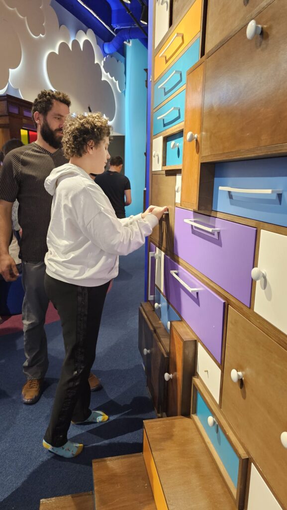 Pierwszy dzień – interaktywne spotkanie w ,,Centrum Bajki Pana Kleksa” w Katowicach. Ucząc się przez zabawę odkrywaliśmy ,,Bajkę Pana Kleksa” eksplorując ogromny teren nasycony zagadkami, zadaniami, niespodziankami, które odsłanialiśmy inspirowani sugestiami pań przewodniczek. Ogromne zainteresowanie wzbudziły w nas eksperymenty pirotechniczno- ogniowe w laboratorium Pana Kleksa. Czekała na nas niespodzianka: spotkanie z Mikołajem, który rozdał symboliczne upominki. Wieczorem po zakwaterowaniu w hotelu w Katowicach niektórzy wyruszyli jeszcze na wieczorny spacer i zakupy na ,,Jarmarku Bożonarodzeniowym”.
