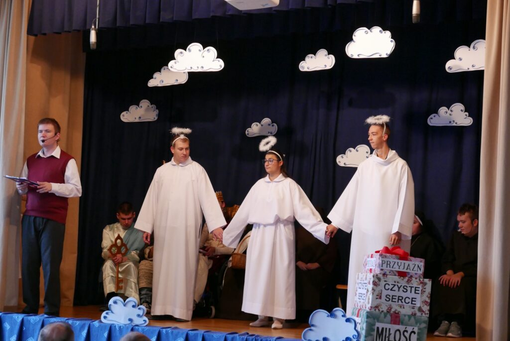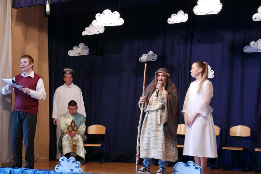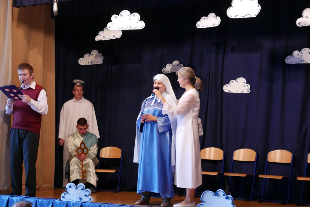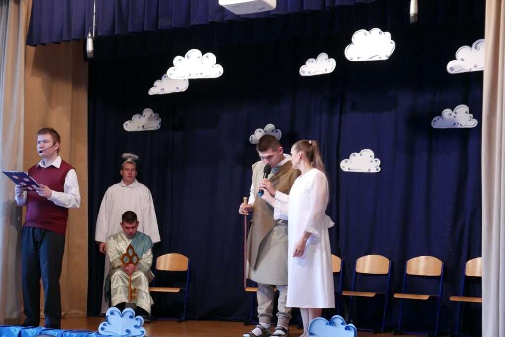 Uroczystość rozpoczęła się Mszą Świętą w naszej kaplicy sprawowaną przez ks. Andrzeja Gałkę z oprawą liturgiczną przygotowaną przez uczniów. Po Eucharystii uczniowie przedstawili spektakl pt.: “Dobre rady świętych”, który był podziękowaniem za pamięć o naszej szkole. Spektakl ten inspirował do refleksji w którym święci przedstawiali swoją drogę do nieba i zachęcali nas do podążania ku Niebu. Ciesząc się obecnością wszystkich świętowaliśmy przy wspólnym stole.
